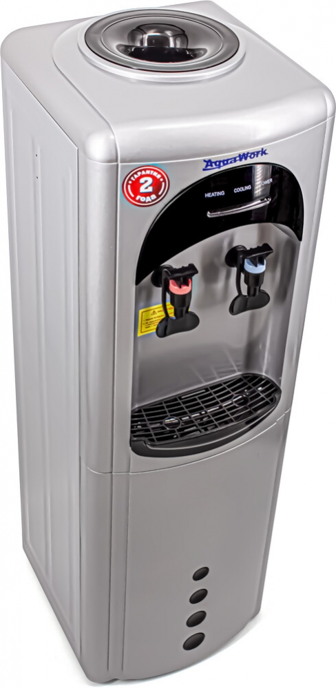 Напольный кулер для воды AquaWork 17-LR с нагревом и производительной компрессорной системой охлаждения в монолитном стальном корпусе.